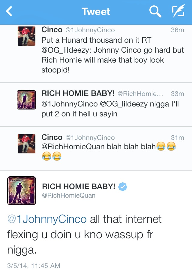 Well there you have it! Nothing is wrong with disagreements, but I can understand viewing people flex on the internet. #AreYouBoutThatLife? LOL! Can’t we all just get along? I expected drama like this to be coming from female rap to be honest. It seems in 2014 men voicing their problems on social media or in interviews is the new thing. Isn’t beef getting to be a little lame these days? No? Okay I wont lie I had my popcorn and was observing! We all need a little excitement. Clearly Johnny Cinco and Rich Homie Quan have an issue. On the other hand Trey Songz and August Alsina have a communication problem right now. I’d rather hear about a more serious beef but, it is what it is! I care about the music. Why not just go blow for blow lyrically? Isn’t that was hip hop is about? I just want to hear some bars. Why not go in on the same track and see who’s was better? At the end of the day, it gets the people going. PROMOTION 🙂